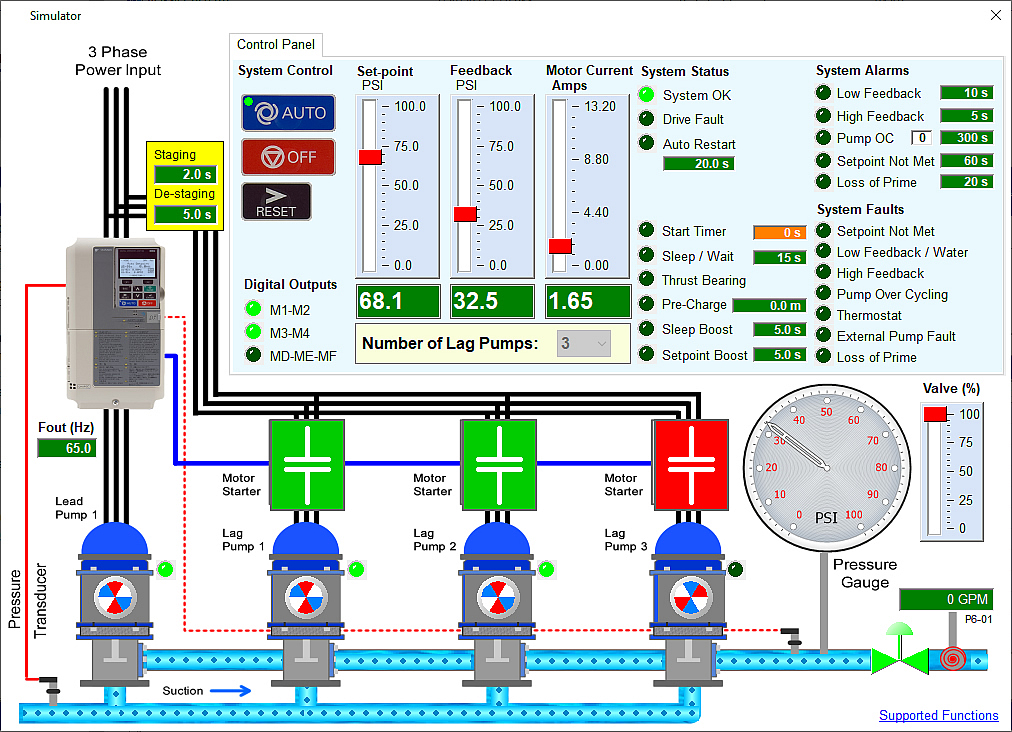 Monitor pressure and stage / de-stage pump operation directly from the application window.