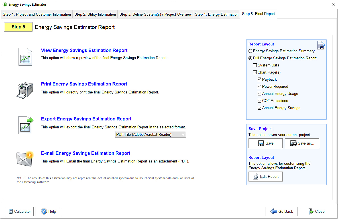 Preview, Print, Export or E-mail Energy Estimation Report.
