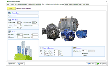 Software estimates energy savings and payback time when installing a new AC motor with a higher efficiency (e.g. NEMA Premium Motor) compared to using a standard efficiency motor or rewinding an existing AC motor. Available as a customized software package for Windows, OS X, Android, IOS or Web-Application.